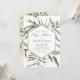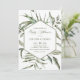 Invitación de baby shower con tema de greenery rústica con marco de hojas y ramas de acuarela con patrón de greenery a juego. Personalice agregando nombres, fecha, lugar y otros detalles. Esta invitación de greenery rústica es perfecta para baby showers de otoño.