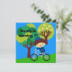 Para un fiesta de verano en la fiesta de cumpleaños del parque, ¡considere nuestras invitaciones de cumpleaños con el tema de la bicicleta! Esta invitación especial de cumpleaños incluye a un chico de pelo marrón que monta una bicicleta y tiene áreas que usted puede fácilmente personalizar con los detalles de su fiesta de cumpleaños!