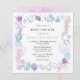 Adorable invitación de baby shower de sirena de acuarela bajo el mar. Diseño femenino que presenta una sirena, criaturas bajo el mar, conchas marinas y coral en estilo de acuarela.