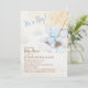 Este dulce diseño fue inspirado por ilustraciones soñadoras de guarderías y libros de cuentos de acuarela suave. Un pequeño elefante azul se balancea suavemente entre nubes esponjosas y estrellas doradas, creando una escena celestial mágica. Perfecto para celebrar la llegada de un bebé varón con una encantadora y caprichosa invitación a la fiesta de baby shower.