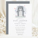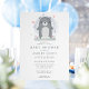 Invite a amigos y familiares a celebrar la próxima llegada con esta encantadora invitación de baby shower que presenta un adorable oso gris de acuarela. El diseño simple y lindo, combinado con colores suaves, crea una atmósfera encantadora perfecta para el baby shower de un niño. Personalice con los detalles de su evento para crear una invitación única y memorable que encantará a sus invitados.