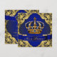 Invitación de baby shower del príncipe coronado azul real y dorado con hermosa corona de joyas azules reales y doradas en un elegante fondo dorado con espirales. Esta hermosa invitación de baby shower del príncipe azul y dorado se personaliza fácilmente para su fiesta o evento agregando los detalles del evento, estilo de fuente, tamaño y color de fuente, y redacción. También puede cambiar el color de fondo.