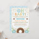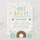 Invitación a la ducha de bebé con temática de donut/rosquilla, con ilustracion de yummy donuts y rociadores de colores