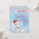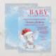 Invitaciones de baby shower de elefante niño con sombrero de Santa y corbata de lazo en un fondo azul de invierno con nieve y un elefante con estilo de acuarela. Esta invitación de baby shower 'afuera hace frío, bebé' se personaliza fácilmente para su evento simplemente agregando el texto de su elección.