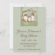 Invitar a la madre que no quiere saber qué es su bebé. Invitación genérica con arte de acuarela de la familia de aves dulces. Tonos de bebé verde y marrón suaves. Colores no específicos de género
