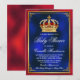 Invitación a la ducha de bebé real con hermosa corona roja y dorada en un hermoso fondo rojo, azul real y dorado. Puede cambiar el texto según sea necesario para su evento. Imprimir en papel brillante para obtener los mejores resultados.
