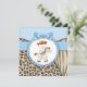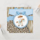 Divertidas invitaciones de baby shower de vaquero azul con estampado de leopardo marrón y tigre. Esta linda invitación de baby shower de vaquero marrón y azul se personaliza fácilmente para su evento agregando los detalles del evento, estilo de letra, tamaño y color de letra, y redacción.