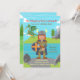 Celebra el cumpleaños de tu pequeño niño vikingo con esta colorida invitación. Cuenta con un niño vikingo con casco con cuernos, escudo de madera y hacha. Detrás de él, hay un dragón verde adorable. Esta invitación de cumpleaños para niño se personaliza fácilmente para tu evento agregando tus detalles. En la parte posterior de esta invitación, hay un paisaje escandinavo y una casa con techo de paja vikingo decorada con una calavera y cabezas de dragón. En la parte frontal, hay un letrero que dice FIESTA, la mascota lobo del niño y globos amarillos. ¡Es ideal para una fiesta de cumpleaños con tema vikingo!