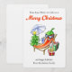 Añade un toque divertido a la temporada de alguien con esta divertida y festiva tarjeta de Navidad de 5x7, que presenta a un personaje de chile cartoon dibujado a mano que vive su mejor vida en las fiestas de Navidad. Este pimiento travieso y lindo se relaja en una silla de sol bajo una sombrilla de playa, bebiendo una bebida con una sonrisa descarada de fiesta. El codo izquierdo del picante personaje descansa casualmente sobre un regalo envuelto, mientras que sus gafas de sol brillantes reflejan el cálido sol de la playa - ignorando el pequeño abeto decorado con su estrella amarilla brillante justo al lado. Un encabezado rojo en negrita dice "Feliz Navidad", con texto de marcador de posición fácil de editar para que puedas personalizar la tarjeta con el nombre de tu destinatario. Debajo de la ilustración, personaliza la línea "y felices fiestas" para crear tu propio mensaje alegre. En la parte inferior, simplemente edita el nombre de la familia de marcador de posición para hacer que la tarjeta sea verdaderamente tuya, como remitente. La parte tras