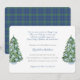 Este diseño de la invitación a la ducha para bebés presenta acuarelas de Navidad adornadas con baubles de estilo "jengibre" azul y blanco. Elementos acuarelas pintados originalmente a mano por mí. En el reverso se ve un cheque de manchas de invierno azul oscuro y verde, creado digitalmente.