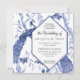 Marco de texto Hexagonal blanco delineado en azul marino en formato cuadrado. Pájaros de pavo real estilizados con mariposas de estilo chino vintage, sauces y hojas de follaje Chinoiserie. El lado inverso tiene la imagen completa y el fondo azul marino para el contraste. Ideal para un boda en cualquier época del año, diseño creado por la artista Audrey Jeanne Roberts. Copyright. acuarela pintada a mano Azul Influencia asiática Floral Chinoiserie tiene una colección completa disponible aquí (copiar y pegar enlace en navegador): https://bit.ly/2DS0gN6