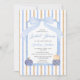 Invite guests to a charming fall gathering with this elegant chinoiserie bridal shower invitation, designed with a blend of classic Southern sophistication and soft seasonal flair. A pale blue watercolor bow graces the top, while the base features stacked blue and ivory chinoiserie pumpkins for a unique autumn touch. The soft gold and blue vertical stripe background adds a refined vintage feel, balancing rustic coziness with graceful formality.
