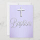 Invitación de Bautizo. Diseño de remolino plateado y hermosas joyas moradas. Morado y plata. Personaliza con tus propios detalles. Por favor, tenga en cuenta que todas las imágenes planas no tienen joyas reales.
