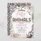 Chita verde rosa Imprimir Safari Invitación de primer cumpleaños Invitación a un safari dulce con temática de cumpleaños para una niña pequeña con una huella de chita rosa y un patrón negro, follaje tropical verde y marrón y rosas ondulados con un estilo boho. Llamar a todos los animales fiestas boho inspiró la invitación para el primer cumpleaños es una manera linda de preparar la escena para una fiesta de primer cumpleaños de safari de chica.