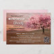 A romantic Rehearsal Dinner invitation featuring a painting of a chocolate fantasy landscape with a blossoming cherry tree. Beautiful for an orchard or Japanese style celebration.