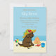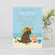Invitación a Baby Shower del Gorra de paja de chocolate Labrador Cachorro. Cute Chocolate Lab se está divirtiendo en la playa!! Arte caprichoso y divertido de Labrador Retriever creado por Naomi Ochiai de Japón. Buena idea de regalo para los perros que aman a Labrador Retrievers.