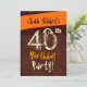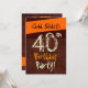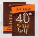 Este diseño de naranja marrón chocolate, crema y calabaza con su texto grosero es una manera divertida pero elegante de invitar a la gente a una celebración de fiestas de 40 años. Todo el texto es totalmente personalizable. Puede experimentar con diferentes tipos de papel haciendo clic en la pestaña "Opciones de invitación" en la esquina superior derecha. Este diseño se presenta actualmente en un papel de fieltro que le da a su invitación de cumpleaños un aspecto cálido.