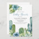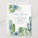 Invitación de baby shower floral de cactus. Fácil de cambiar el texto. Bonito diseño de acuarela.