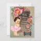 Preciosa rosa rosa, perlas elegantes y niña que lleva un precioso tutú rosa sobre un hermoso fondo azul teal y dorado. Esta elegante invitación de tutú de bailarina se personaliza fácilmente para su evento agregando sus detalles en el estilo de fuente y color, y redacción de su elección. Este es un diseño impreso sin perlas reales, joyas, purpurina, etc.