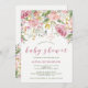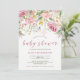 Invitación Chorreo de Acuarela Rosado y Floral Dorado para Ba