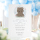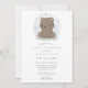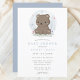 Invite a amigos y familiares a celebrar la próxima llegada con esta encantadora invitación de baby shower que presenta un adorable oso pardo de acuarela. El diseño simple y lindo, combinado con colores suaves, crea una atmósfera encantadora perfecta para el baby shower de un niño. Personalice con los detalles de su evento para hacer una invitación única y memorable que los invitados adorarán.