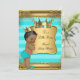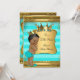 Chorro de bebé príncipe niño. Corona dorada turquesa azul acuático verde, Chorro de bebé étnico africano americano lindo. Fondo turquesa y marco dorado. Invitación de fiesta "es un niño". Invitaciones de fiesta "Chorro de bebé étnico africano americano" "chorro de bebé mexicano", "chorro de bebé hispano", "chorro de bebé indio",