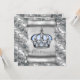 Elegante pergamino con corona plateada y azul bebé, invitación para baby shower de principito. Esta hermosa invitación de baby shower del príncipe azul y plateado se personaliza fácilmente para su evento. Elija sus palabras, estilo de fuente y color.
