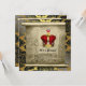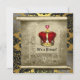 Invitación de ducha de bebé de príncipe pequeño corona negra y dorada de pergamino dorado elegante príncipe real rojo.
