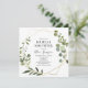 Ingrese a un mundo donde el diseño moderno se encuentra con la gracia de la naturaleza con nuestra invitación de despedida de soltera. Enmarcada en un marco geométrico contemporáneo, las hojas de vegetación en acuarela adornan delicadamente los bordes, creando un fondo sereno y elegante. Centrado dentro de este exuberante marco, el nombre de la futura novia se despliega de manera radiante en letra moderna, invitando a los invitados a celebrar una historia de amor en flor. Esta invitación no es simplemente un anuncio, es una encarnación de la alegría y la anticipación que precede al gran día. Únase a nosotros para celebrar cada hermoso momento que conduce al "sí, acepto".