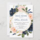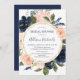 Invitación Chorro de rosa azul marino dorado elegante ducha d