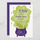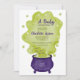 ¡Se está preparando un bebé! Prepárate para un no tan espeluznante fiesta de la ducha de bebé de Halloween con este adorable y adorable caldero de brujas moradas, y una poción verde y una burbuja invitan a la presentación del lindo ilustracion de Halloween. Perfecto otoño otoño Halloween género neutro ducha de bahía.