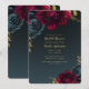 Invitación Chorro nupcial floral azul oscuro con vegetación d