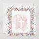Invitación Christening Baptism Pink Floral Cruz religiosa