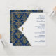 Elegante cruz azul y dorada con adorno de bebé damasco dorado e invitación al bautismo. Este elegante diseño de bautizos blancos, azules y dorados funciona para niños o chicas. Se trata de un diseño impreso sin áreas elevadas o grabado en relieve.