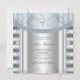 Elegante cruz plateada invitación a bautizar azul. Esta invitación a un bautizo de color gris y azul plateado se personaliza fácilmente para el evento añadiendo los detalles del evento, el estilo de fuente, el tamaño y color del tipo de letra y la redacción.