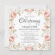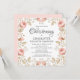 Las hojas de oro de moda forman un marco botánico moderno. Rosas de acuarela rosa y rosales se encuentran en el follaje dorado. La cristiandad está escrita en un guión grande. El nombre de su hija está escrito en todas las letras mayúsculas. El resto de los detalles de la celebración se encuentran en una fuente de texto simple. El resultado es un diseño floral abierto y aireado.