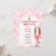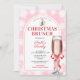 Invitación Christmas Brunch Party Red Bow Wine Pink Gingham