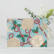 Aqua, holiday red and green with neutral shells colorway. Sand dollars, sea shells and starfish dance around a nautical rope creating these beachy holiday designs. This design is sprinkled with decorative holly and a background of tonal coral. Have a very Beachy Christmas! The back has a faux texture pattern in the background.