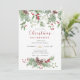 This invitation features a festive watercolor Christmas greenery design with elegant holly leaves, pine branches, and seasonal botanical details. The classic holiday color palette combined with a soft hand-painted style creates a warm, inviting, and timeless look.
