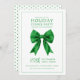 Invitación Christmas Holiday Dinner Party Green Satin Bow