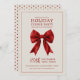 Invitación Christmas Holiday Dinner Party Red Satin Bow