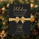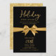 Invitación Christmas Holiday Open House Gold Bow Black