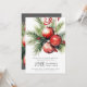Elegant Christmas / Open House / Dinner Party Invitation template with modern watercolor Christmas baubles, fir branches, bow, and ribbon. Impress your friends with this sophisticated and elegant invitation design. It's fully customizable!