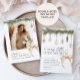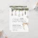 This Christmas Baby Shower invitation features Christmas Ornaments and a neutral bow. The neutral beige theme is perfect for a boy or girl winter Baby Shower. At the backside you can add your own photo of beautiful the mom-to-be.