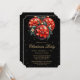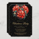 Elegant black botanical Christmas party invitation featuring red floral Christmas ornaments against a starry background. Perfect design for Christmas parties, holiday soirees, corporate events, holiday cocktail parties and more. Easily personalize this modern invitation with your party details.