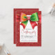 Christmas red and green bow and snowflakes party holiday invitation. Set the perfect festive tone with this charming Christmas party invitation! The classic red and green palette centers around a large, eye-catching bow, beautifully anchored by a sparkling snowflake. This joyful design is then framed by a wide, vivid red border scattered with crisp white snowflakes.