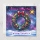 Say Merry Christmas from all of us ( or your text) with this holiday wreathe set in a unique cosmic setting with the Star.