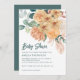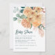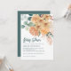 Se trata de una invitación a la ducha de bebés con ramo de crisantemo floral, orquídeas, pampas, rosa y diseño de eucalipto.
