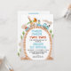 Chugga Chugga Dos trenes 2do cumpleaños Invitación chugga de niño moderno dos invitación de 2do cumpleaños de tren con un tren mayoritariamente azul con animales de safari, colinas y vías ferroviarias. Este diseño tiene un código qr en la parte posterior.