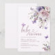 Elegante invitación de baby shower floral y mariposa acuarela en color mauve polvoriento.